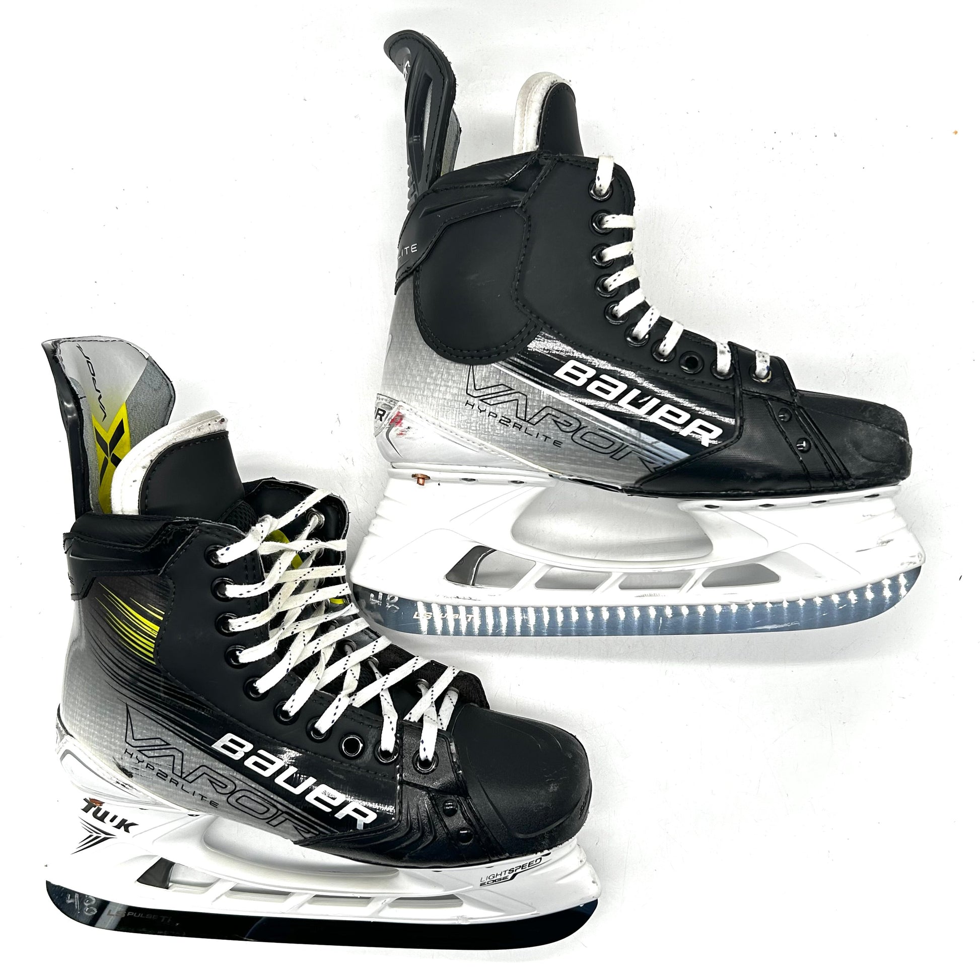 These skates are in very good used condition with general wear. There are some cuts to the holders and toe boxes but no cause for concern. These skates are sized 6.75E with 272 Lightspeed Edge holders and used Pulse Ti steel. They feature the retail Hyperlite 2 graphic and extra ankle protection on the inside of each boot.
