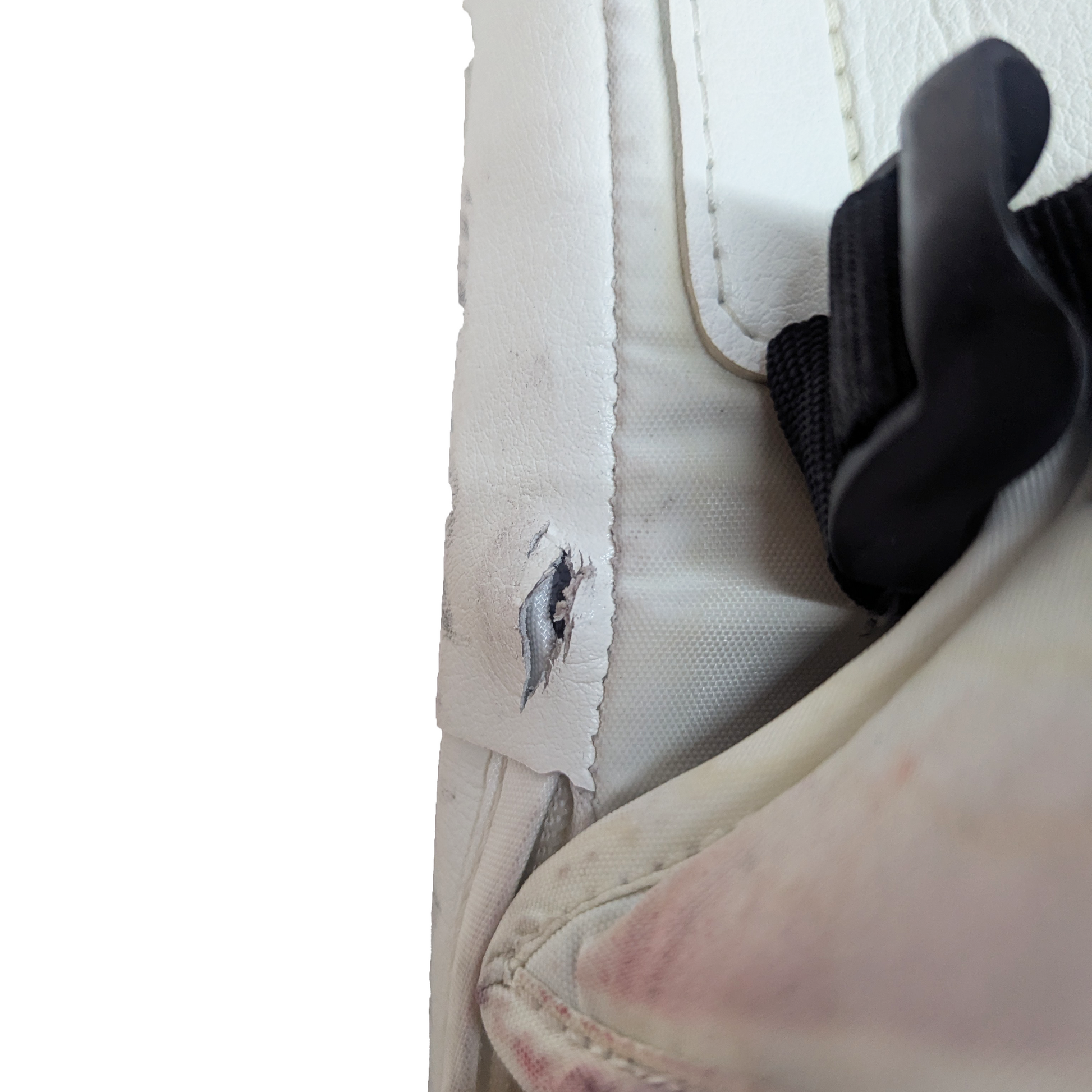 CCM Extreme Flex 6 - Used AHL Pro Stock Goalie Blocker (White/Red/Yellow)