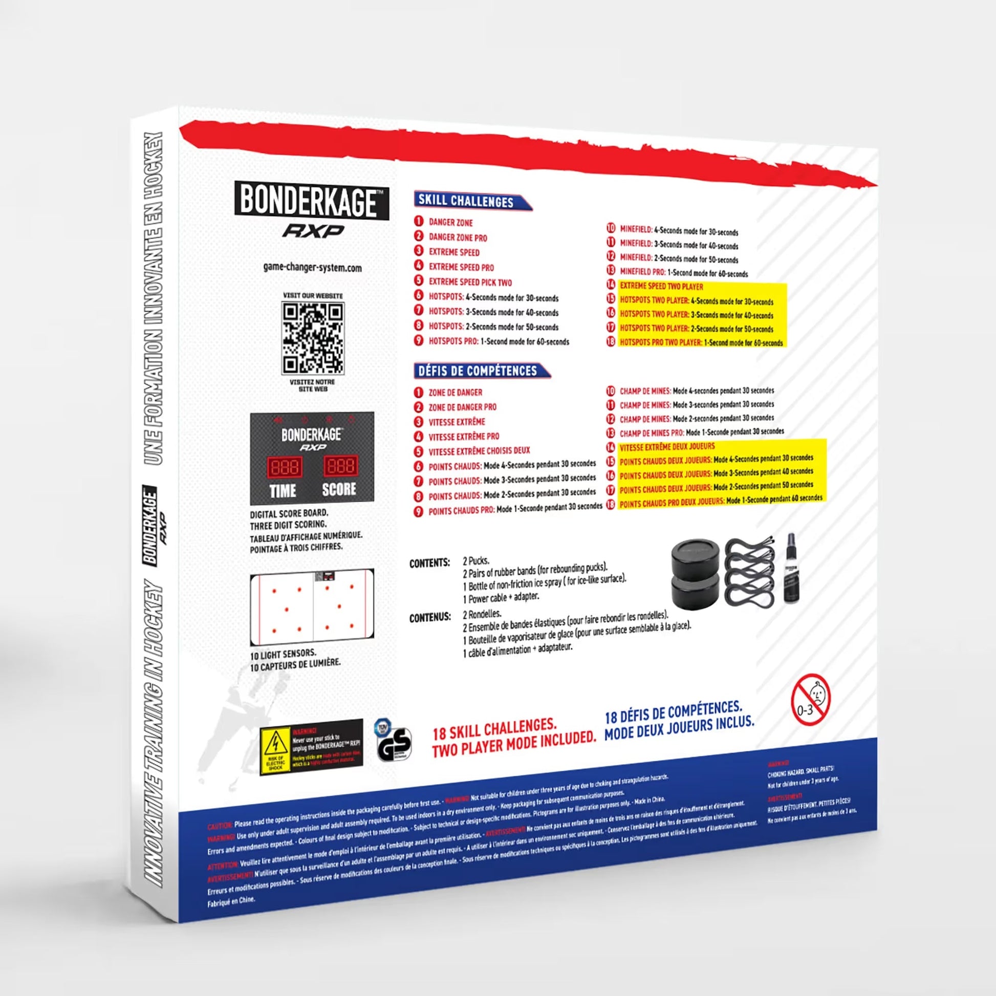 The RXP Game Changer is a revolutionary hockey training device that will transform your skills on the ice! Boost your concentration, reaction time, and hand-eye coordination while mastering stick handling like a pro. This electronic board simulates the ice rink surface, built to last with top-quality materials. Train solo or compete in thrilling 2-player modes, selecting from 18 fun and challenging games. Elevate your game with the RXP Game Changer.